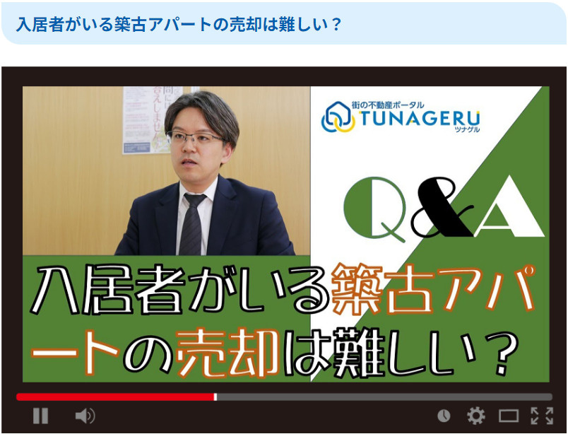 本日も、弊社が加盟している【街の不動産ポータル TUNAGERU(ツナゲル)】にお問い合わせがあった不動産売却に関するQ&Aについての回答動画をご紹介します。